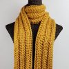 Bright and cheerful, this yellow knitted scarf brings sunshine to even the coldest days. Its lightweight yet warm texture makes it an ideal winter accessory. Pair it with your favorite coat for a playful and stylish finish.