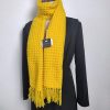 Bright and cheerful, this yellow knitted scarf brings sunshine to even the coldest days. Its lightweight yet warm texture makes it an ideal winter accessory. Pair it with your favorite coat for a playful and stylish finish.